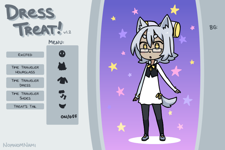 very cute indeed <3 , , , i like this dressing game it makes me calm myself . . . please make more and take your time ^^ your games are very good!