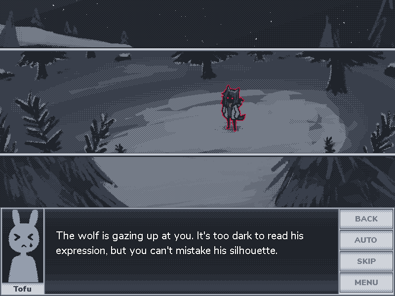 Hello beloved creator , i just want to say thank you for giving us , well , allowing the others and me enjoy this nouvel(i dont know how to call these types of games, so sorry in advance) i loved every second of it and i must say that i got scared when i read the wolf epilog i was expecting less ...wholesomeness, but i am glad i was wrong , so far , love your games and everything you create , amazing creativity , wish you only the best and good luck in the future